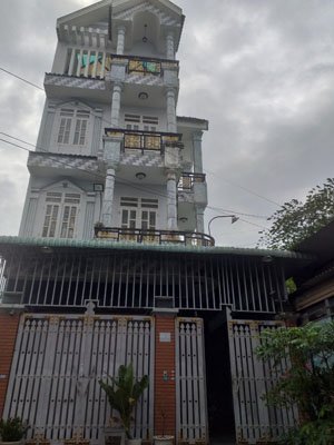Nhà 1 triệt 3 lầu, 4 PN, phòng khách, bếp, 6 phòng vệ sinh, phòng thờ, sân thượng trước sau.