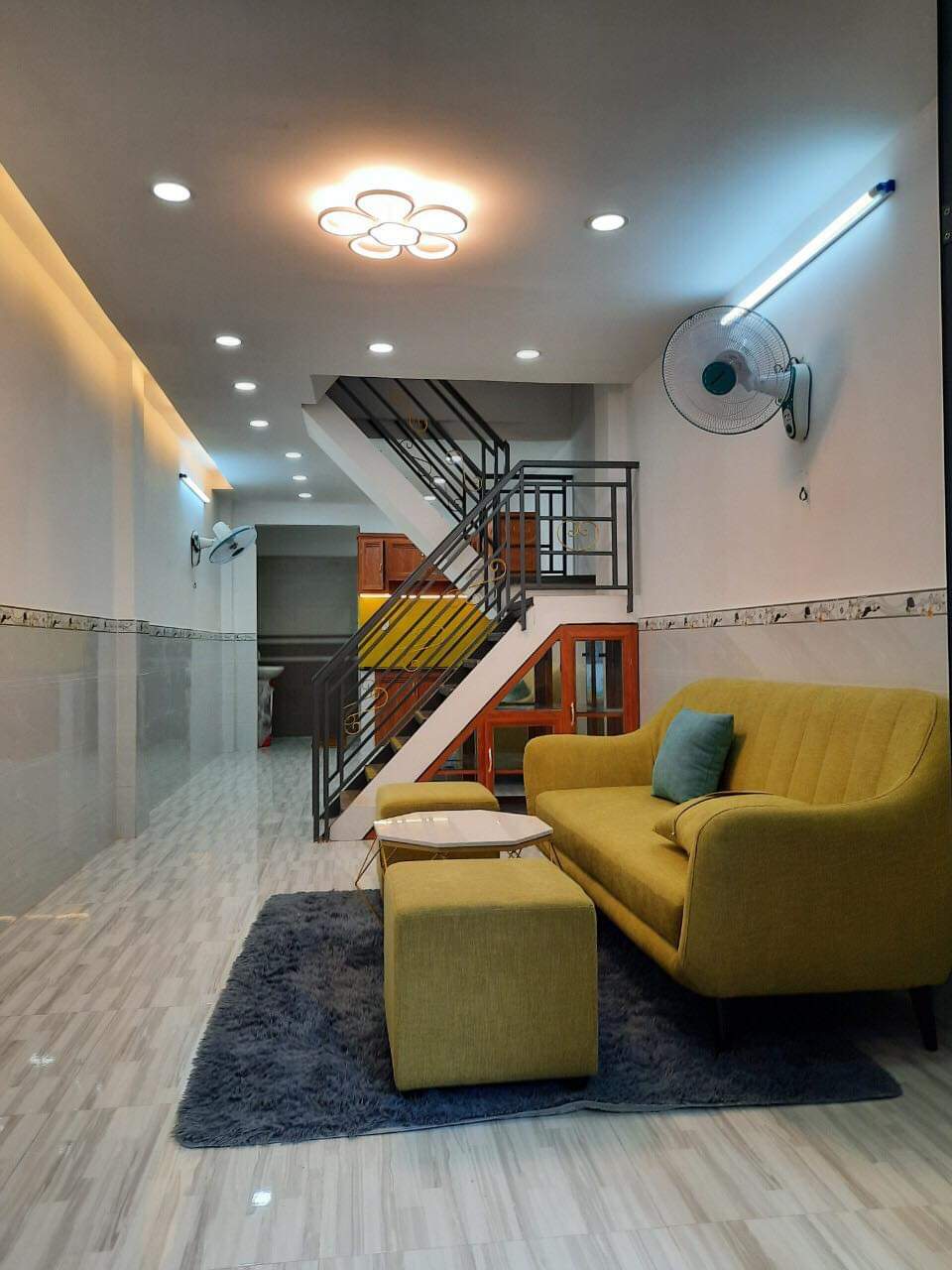 3m x 11m, nhà 1 trệt 2 lầu, phòng trước có ban công.