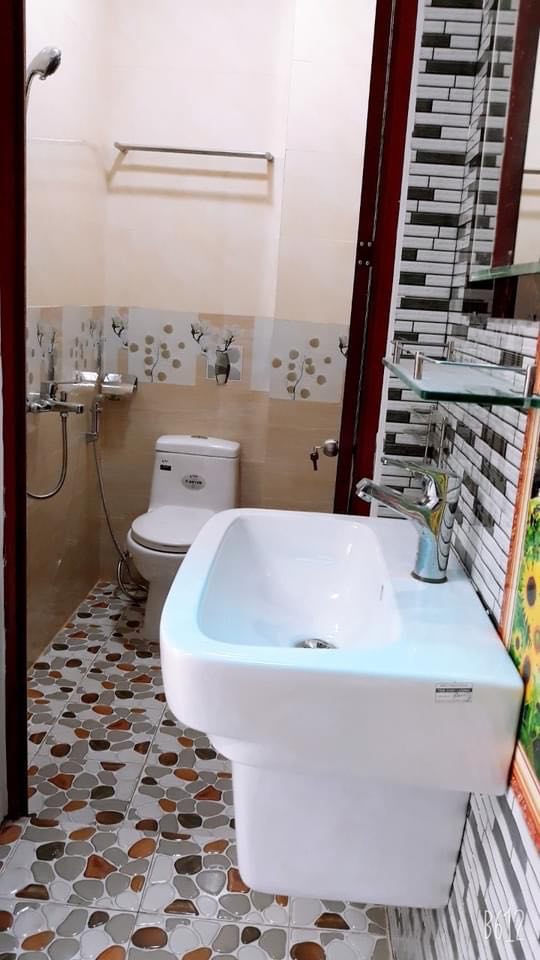 Nhà đúc BTCT chắc chắn,1 trệt, 3 lầu, 6 phòng ngủ, 6 wc bếp mở, nhà có giếng trời, sân thượng, sân chơi, sân xe.