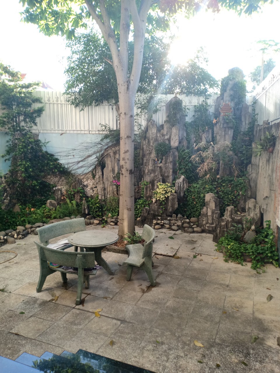 Sân vườn phía sau nhà gồm 1 hòn non bộ, hồ cá và cây cảnh khoảng 50m2. Bên hông nhà có 1 hồ cá chép koi 10m2.
