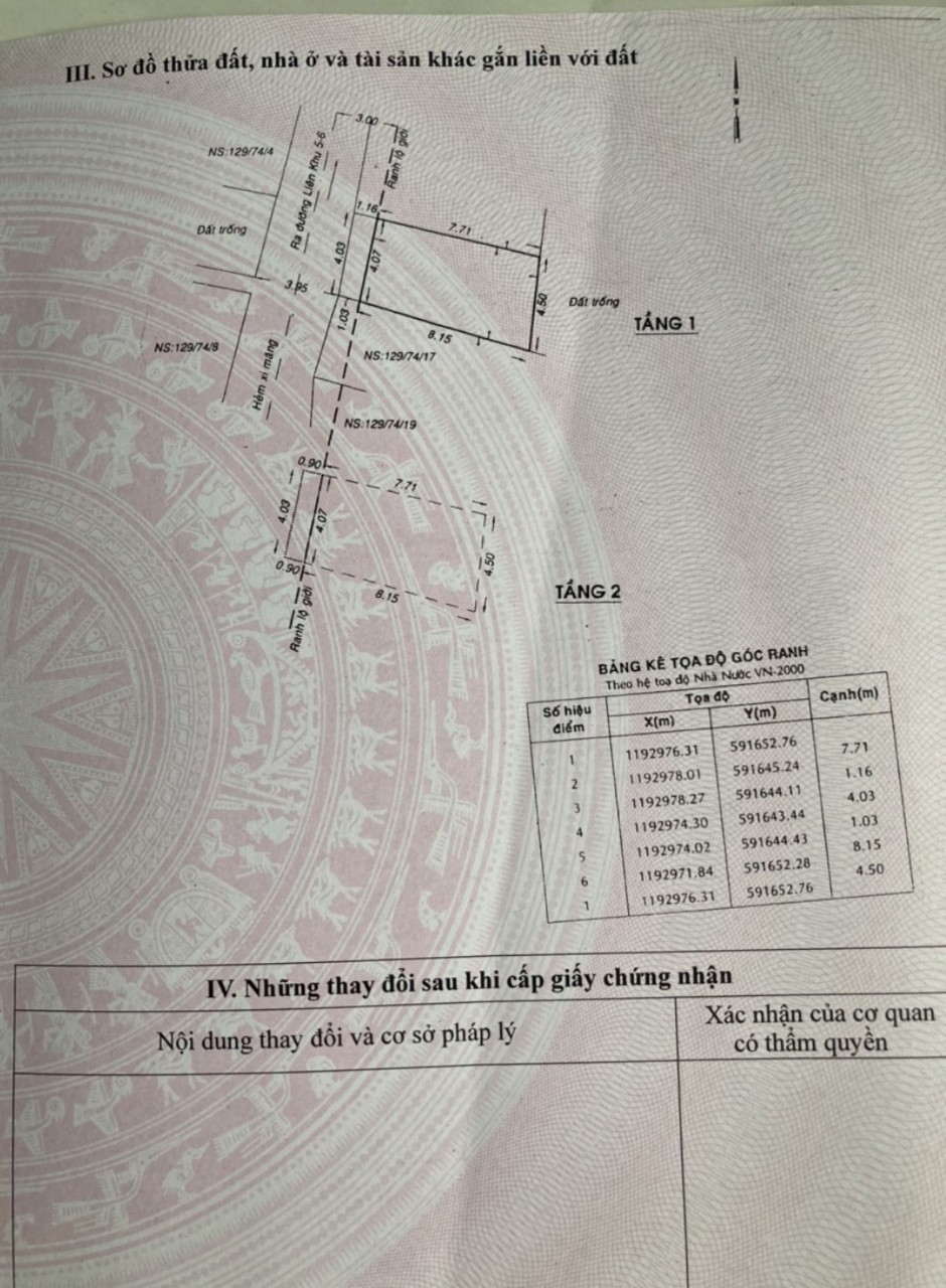 Diện tích 38.1m2, DTXD 33,8m2, DT sàn 71.2m2.