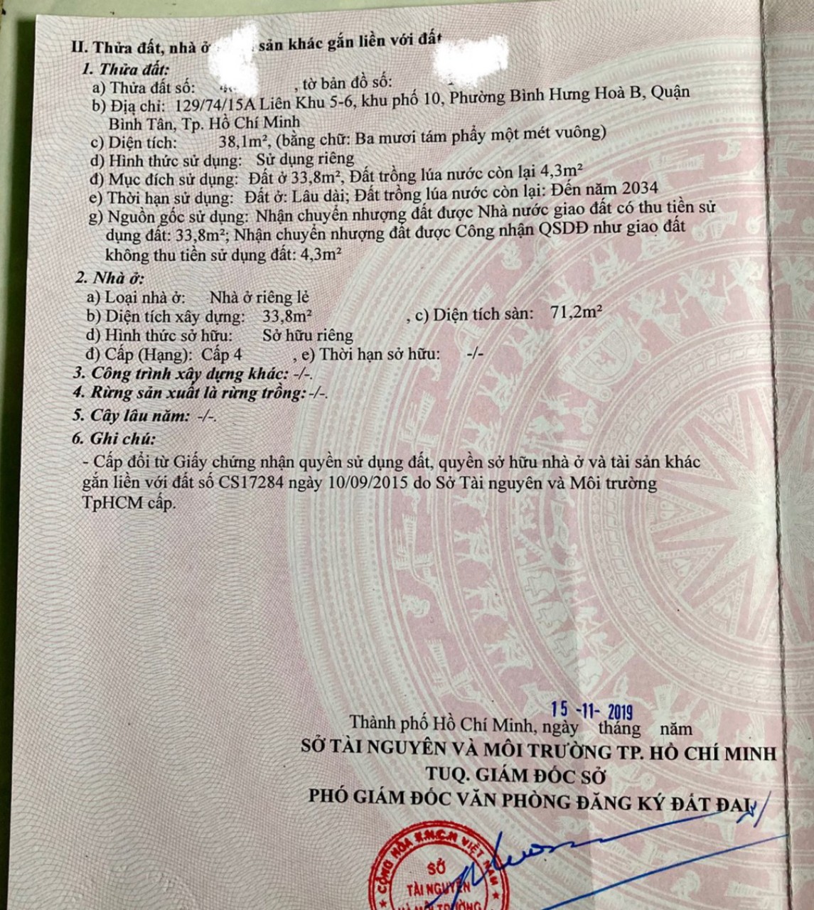 Bán nhanh nhà tại địa chỉ 129/74/15A LK5-6, Bình Hưng Hòa B, Bình Tân.