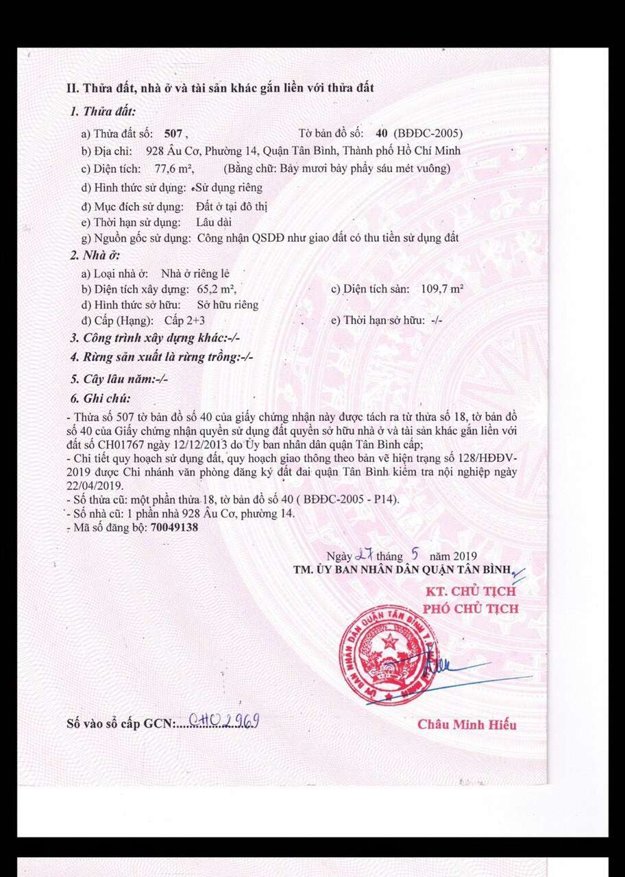 Tôi cần bán nhà mặt tiền Âu Cơ - Tân Bình - Diện tích 105 m².
