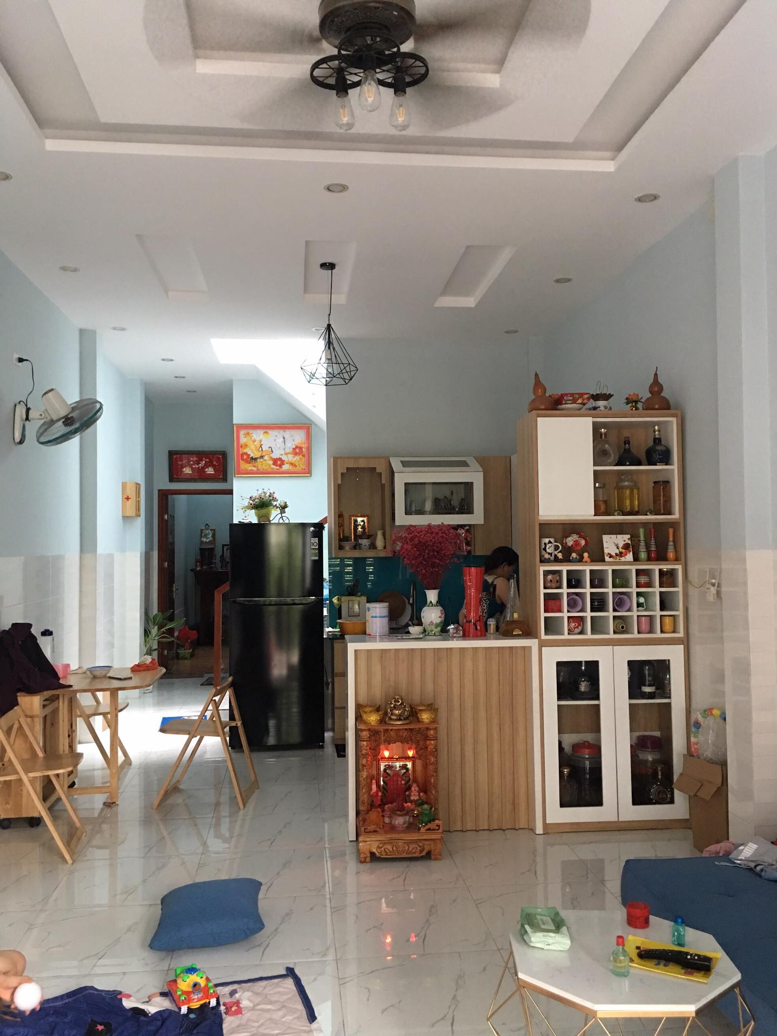 Nhà 1 trệt 1 lầu đúc sẵn sân thượng full nội thất, tủ lạnh, máy giặt, tủ bếp âm, giường, tivi 50 LG. Tất cả đồ inverter....