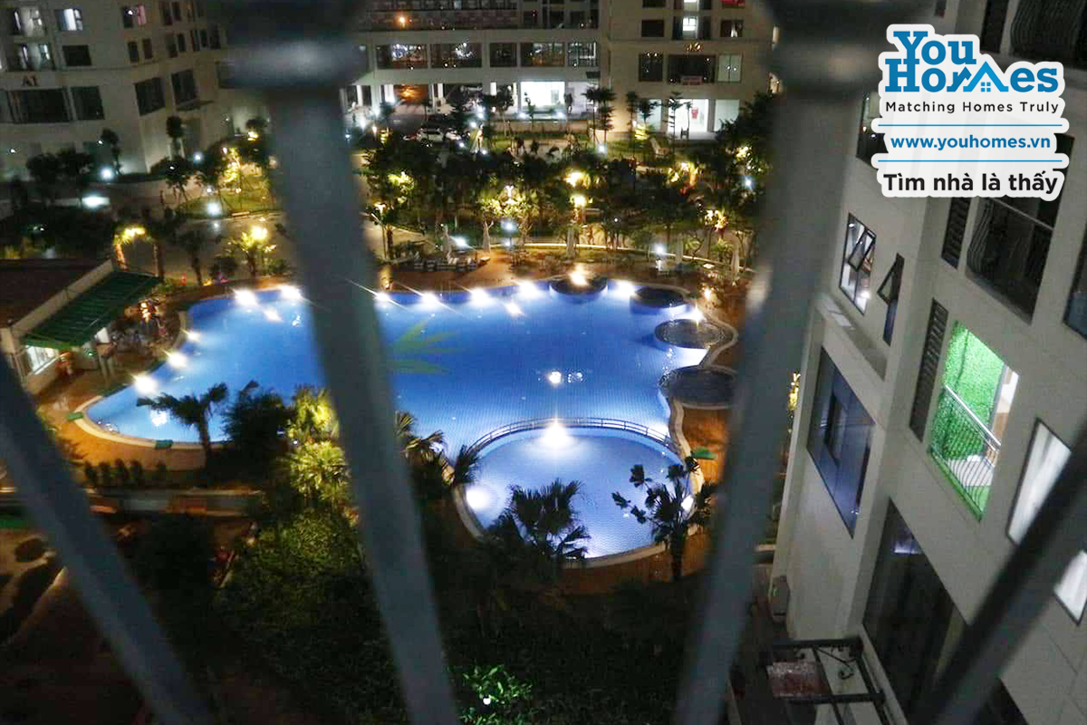 Căn Góc lồi của Tòa nhà, hai mặt thoáng, view Bể Bơi, Hồ điều hòa, 02 Ban công hướng Đông và Nam rất mát và sáng. Nội thất đầy đủ, về ở ngay