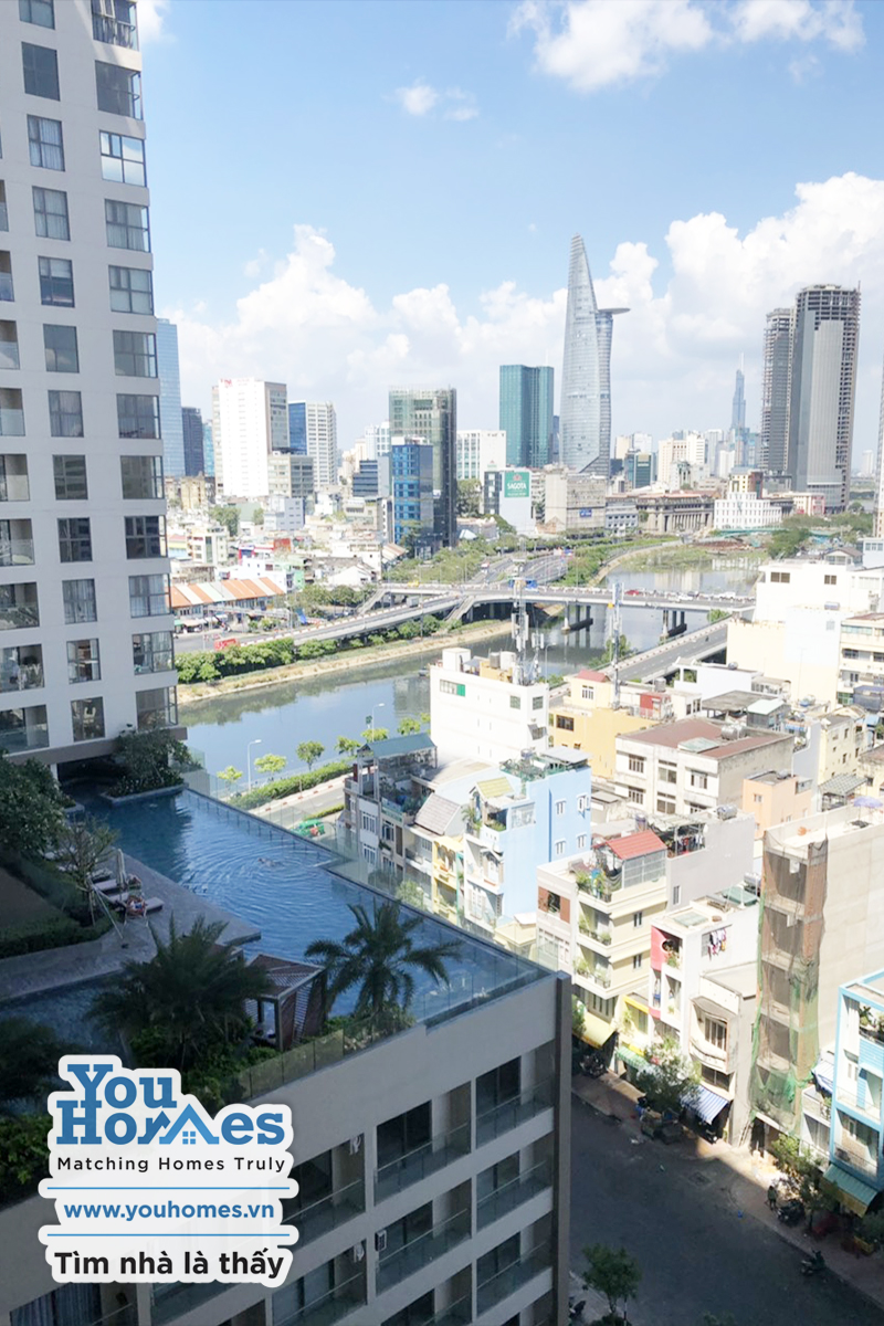 View mặt trước nhìn về Bitexco, concept đồng bộ, nội thất full, đồ tốt, đang có hợp đồng cho thuê 1 năm, rất dễ cho thuê và kinh doanh.