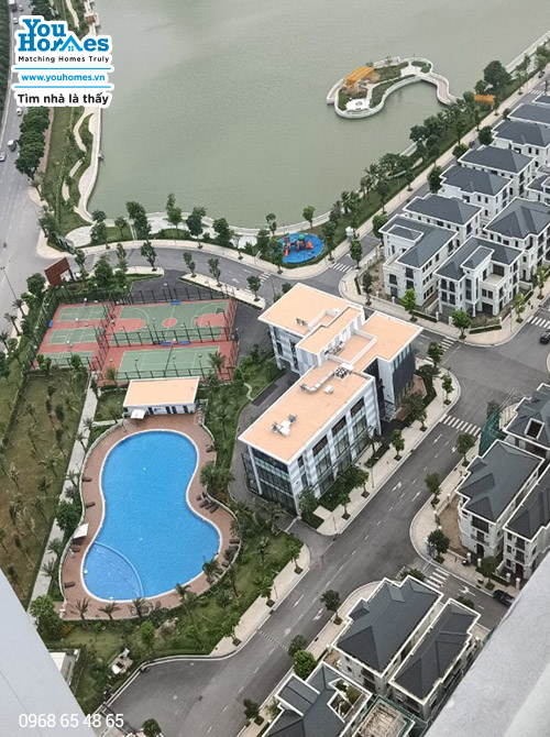 -căn góc, ban công hướng Đông Nam nên rất thoáng và đầy đủ ánh sáng, view hồ và bể bơi cảnh rất đẹp.