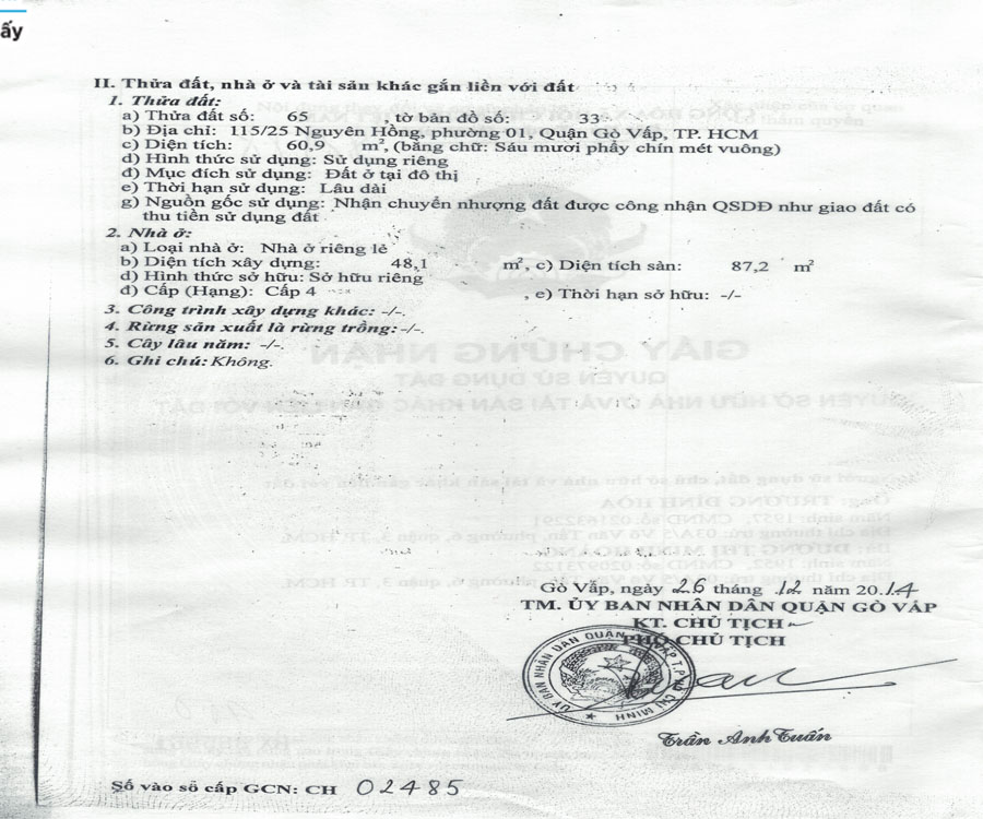 Bán nhà riêng Nguyên Hồng Gò Vấp - 61m2 - Hướng mát