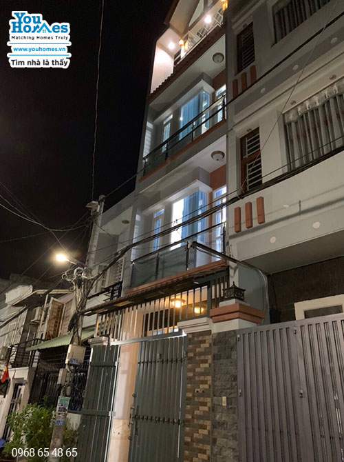 Nhà mới xây. Diện tích: 4m x12m, gồm 1 trệt, 2 lầu, 1 sân thượng, 4 phòng ngủ, nhà vệ sinh riêng mỗi tầng, bếp chữ L.