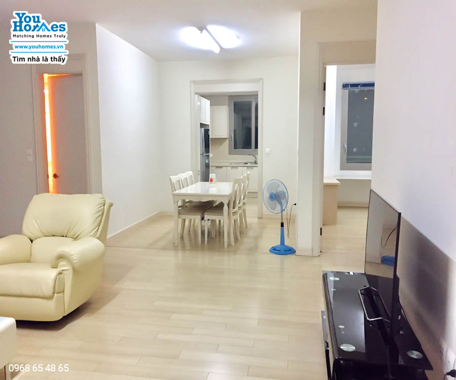- Phòng khách thiết kế thông với phòng ăn và bếp tạo nên sự tiện lợi cũng như tối đa hóa không gian căn hộ.
