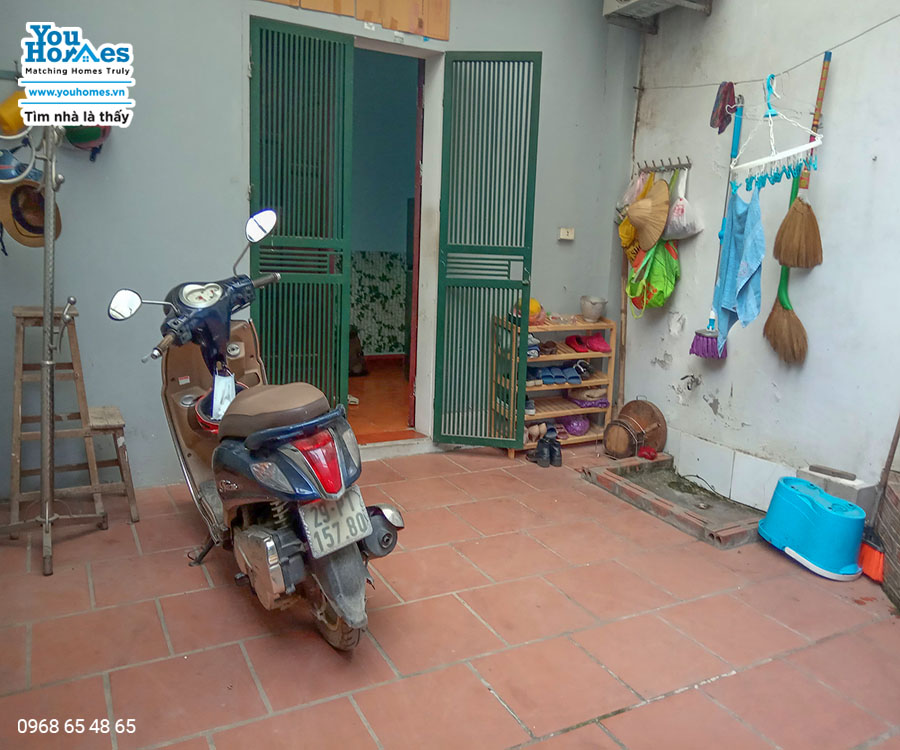 Trước nhà dưới tầng 1 có sân rộng hơn 10m, để được 5 xe máy.