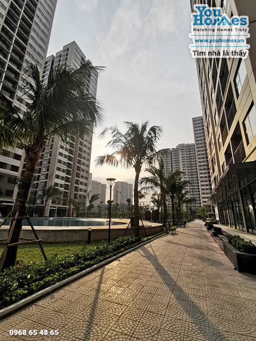 - Ngay sát hầm để xe toà nhà. Phía sau là bãi đỗ xe nổi có bể bơi kính tầng 5.