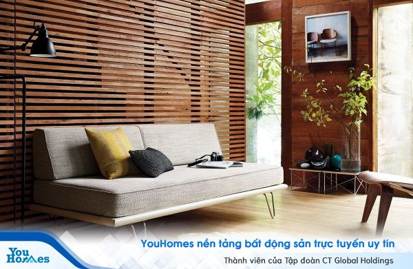 Không gian phòng khách tự nhiên với phần chiếc đa năng cùng những vách ngăn gỗ giúp cả không gian trở nên nhẹ nhàng ấm áp.