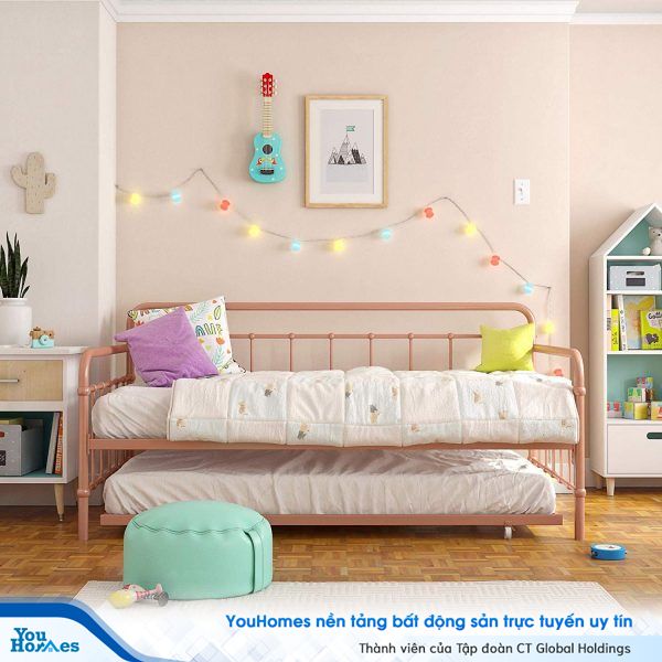 Giường đa năng màu hồng phấn nhẹ nhàng cho cô nàng nữ tính.