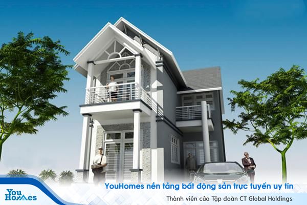 Mẫu thiết kế đầu tiên mà Youhomes muốn nhắc đến đó là mẫu nhà 2 tầng mái thái dạng L. Mẫu nhà được thiết kế với cột trụ cổ điển và mái hiên nhỏ. Các mặt tiền của ngôi nhà đều thiết kế cửa sổ để ngôi nhà luôn được thoáng mát. Ban công tầng 2 đua ra kết hợp với mái thiết kế theo hình khối lạ mắt, tạo điểm nhấn cho phần mái thái.