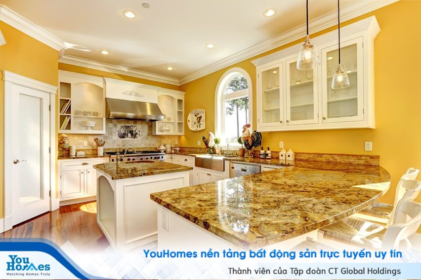 Phòng bếp vừa là không gian để nấu nướng vừa là nơi các thành viên trong gia đình quây quần bên nhau, Vì vậy, cần thiết kế nhà bếp sao cho thuận tiện việc nấu nướng mà vẫn đảm bảo tính thẩm mỹ.Mẹo chọn gạch lát nền - ốp tường cho nhà bếp siêu đẹp!