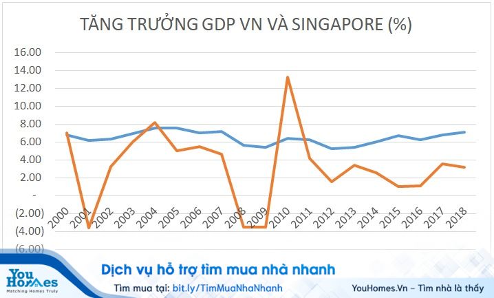 Hiện nay, kinh tế Singapore chịu ảnh hưởng khá lớn từ cuộc chiến tranh thương mại giữa Trung Quốc và Hoa Kỳ. HongKong và Trung Quốc Đại lục là những thị trường xuất khẩu lớn nhất của Singapore. Tăng trưởng GDP quý 1-2019 của Singapore chỉ đạt 1,2%, trong khi đó Việt Nam đạt mức 6,79%. Theo dự báo của ADB thì tăng trưởng GDP của Singapore chỉ đạt mức 2-3% trong nhưng năm sắp tới. Khác với Singapore, Việt Nam là một trong những quốc gia được hưởng lợi bởi chiến tranh thương mại. Thời gian sắp tới chắc chắn sẽ có nhiều doanh nghiệp nước ngoài rút khỏi Trung Quốc và cả những doanh nghiệp Trung Quốc sẽ đầu tư mạnh vào Việt Nam. Do đó, triển vọng tăng trưởng kinh tế Việt Nam là khá sáng sủa. Mức tăng trưởng trung bình có thể đạt 6,5% trong những năm tới.