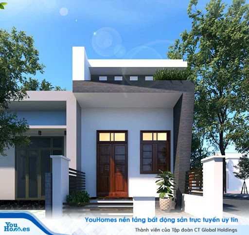 Nhà cấp 4 nhỏ nhắn được đầu tư khá nhiều trong thiết kế và hình thức bên ngoài. Phần cửa gỗ thông thoáng với những khe thông gió cực kỳ hợp lý. Phần cửa ra vào được thiết kế bằng kính bản lớn giúp tận dụng ánh sáng tự nhiên.