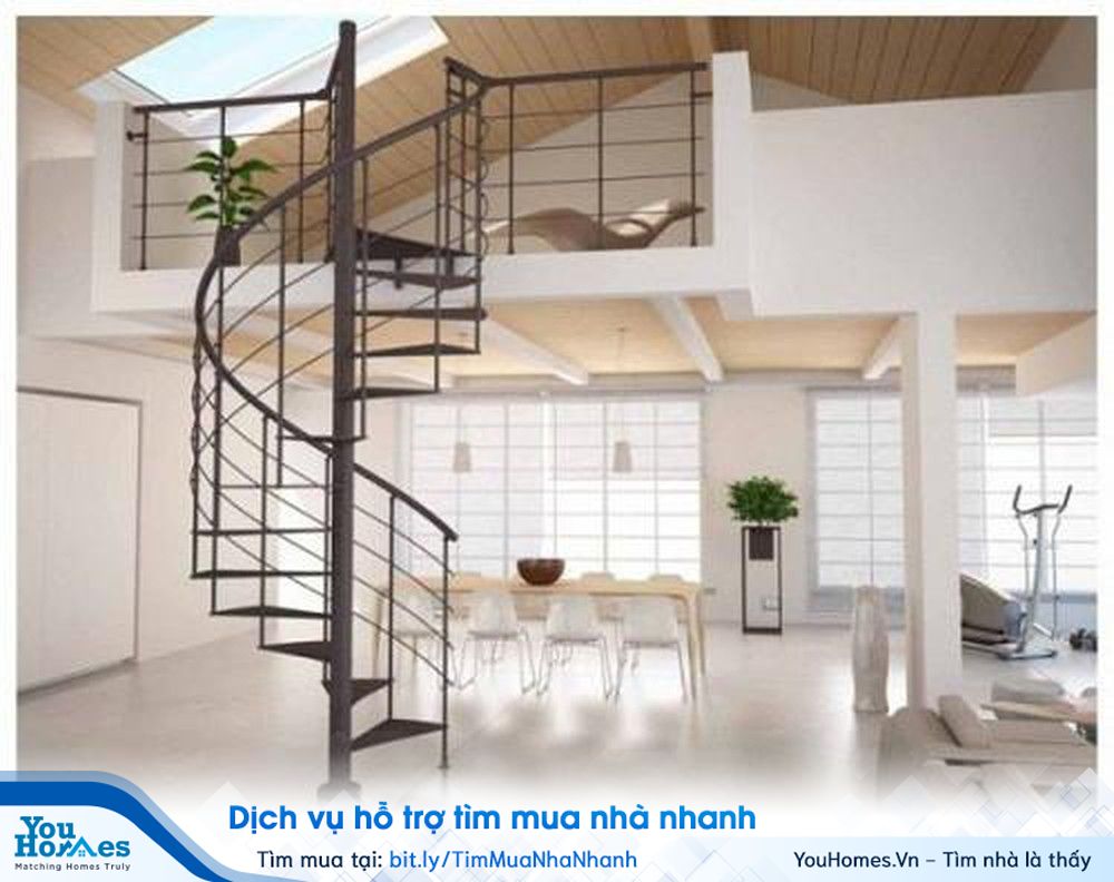 - Hình dáng tốt nhất của cầu thang là loại thẳng. Cầu thang xoắn tuy rất đẹp mắt và độc đáo, tốn ít diện tích nhưng không tốt về mặt phong thủy. Theo đó, loại cầu thang này tạo ra luồng khí xoắn, không tốt cho gia chủ và các thành viên trong nhà, nhất là nam giới.