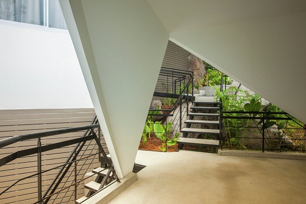 Các tầng nghỉ dưỡng kết nối với nhau qua hệ thống cầu thang kim loại hay bê tông.