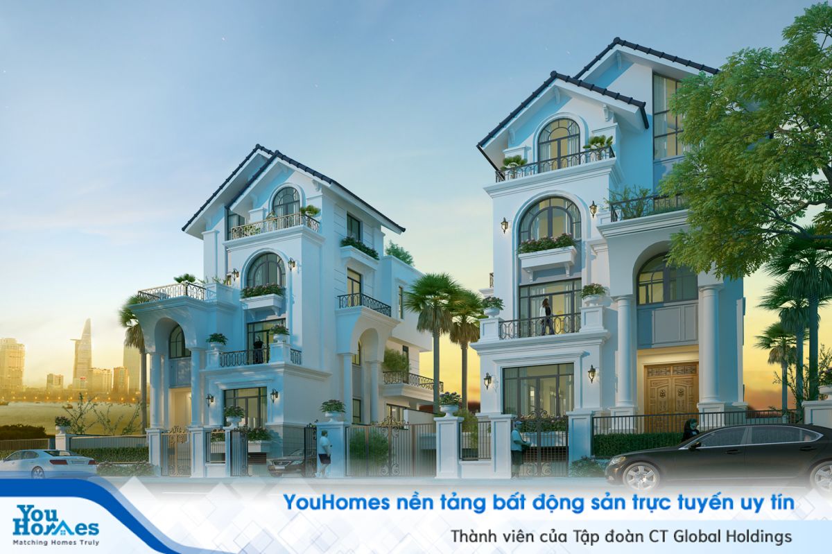 Toàn dự án này có khoảng 63 căn biệt thự, trong đó có 9 căn biệt thự đơn lập và 54 căn biệt thự song lập. Biệt thự có 3 loại diện tích là 225m2, 325m2 và 437m2. Các căn biệt thự được thiết kế rất sang trọng, thuộc dòng biệt thự triệu đô với 1 tầng hầm, 1 tầng trệt và 2 tầng lầu.
