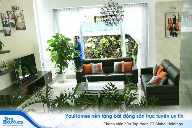 Bên trong phòng khách, cây cảnh cũng rất được ưu tiên