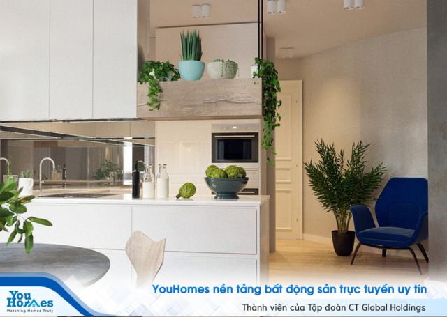 Một điều đáng chú ý nữa là căn hộ tươi trẻ hơn với sự xuất hiện của khá nhiều cây xanh được trang trí mà không theo nguyên tắc nào. Sự bài trí tự nhiên này không đưa vẻ đẹp của căn hộ theo hướng tiêu cực mà nó lại tạo không gian không gò bó mang đến sự thoải mái cho chủ căn hộ.