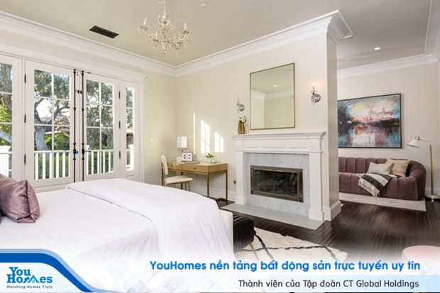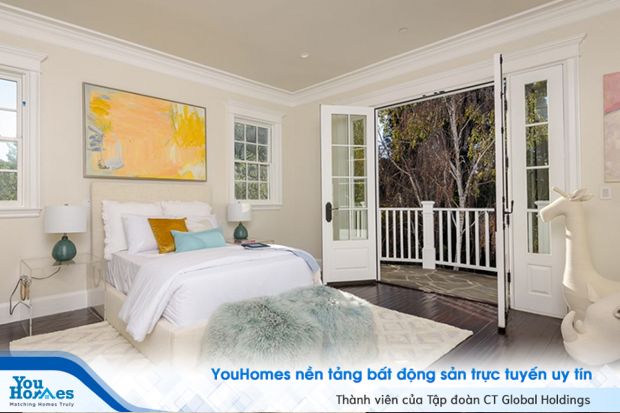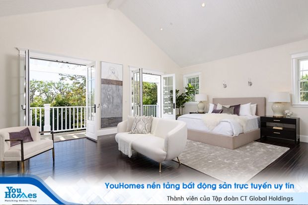Phòng ngủ chính thơ mộng, có ban công riêng nhìn ra ngoài trời