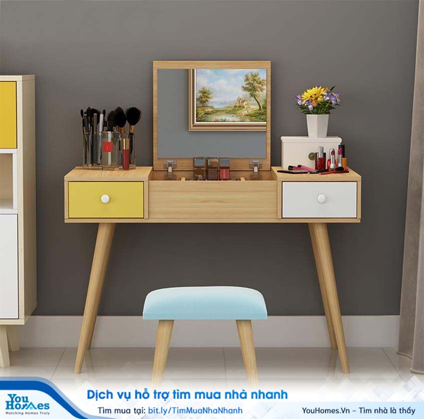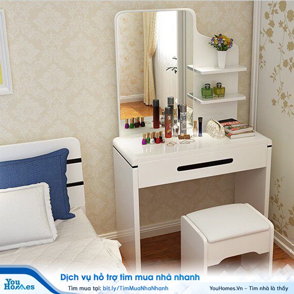 Hiện nay, người ta thường đồng bộ với các đồ nội thất khác trong phòng ngủ như giường ngủ, tủ, táp đầu giường,…nhằm tạo sự nhất quán và hiện đại cho không gian căn phòng. Với những căn phòng hạn chế về diện tích, bạn có thể lựa chọn những loại bàn trang điểm nhỏ gọn, có ghế ngồi thu gọn trong gầm bàn hoặc loại bàn trang điểm tích hợp các chức năng khác như bàn uống nước nhỏ, bàn làm việc… rất tiện dụng, vừa tiết kiệm không gian, vừa đa năng.