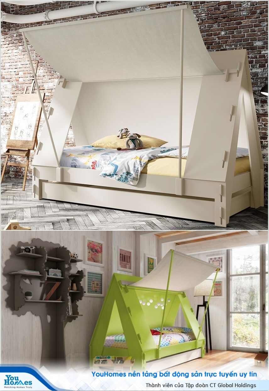 Chiếc giường lều dễ thương mang lại cho bé cảm giác như được tham gia cắm trại.