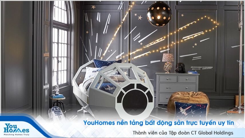 Nếu thích khám phá những vì sao, bé nhà bạn sẽ thích mê thiết kế phòng ngủ theo chủ đề Star Wars này.