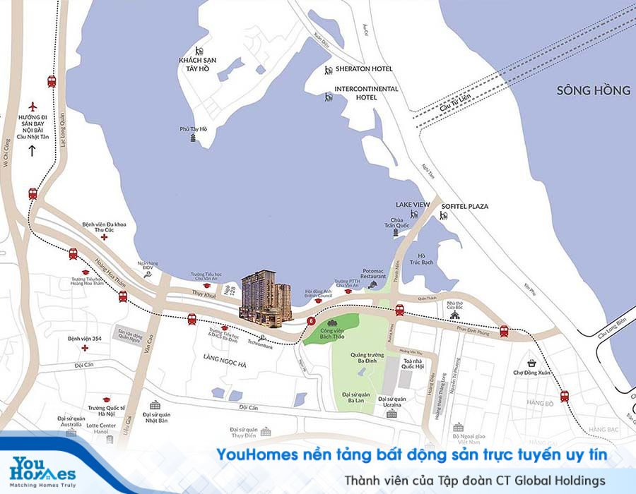 Vị trí đắc địa là ưu điểm vô cùng nổi bật tại Sun Grand City Thụy Khuê Residence. Dự án nằm tại trung tâm quận Ba Đình là cầu nối 2 tuyến phố chính là Thụy Khuê và Hoàng Hoa Thám. Từ dự án cư dân có thể dễ dàng đi bộ tới Hồ Tây thợ mộng hay công viên Bách Thảo, tận hưởng cuộc sống An Nhiên ngay tại trung tâm thủ đô Hà Nội.