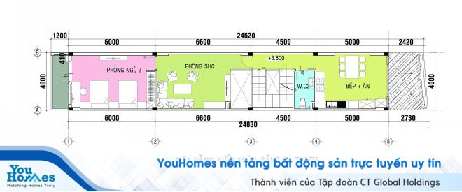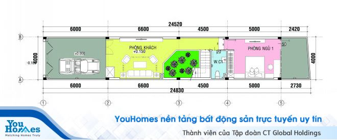 Căn nhà lý tưởng cho 3 thế hệ cùng sinh sống được thiết kế với chi phí hợp lý với diện tích 4x24m. Với thiết kế cực kỳ hợp lý giúp tiện lợi trong việc sinh hoạt lại vừa đảm bảo về yếu tố thẩm mỹ.