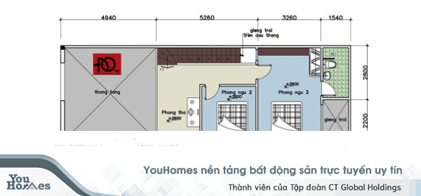 Mặt bằng tầng lửng được bố trí gồm các công năng: 2 phòng ngủ và 1 nhà vệ sinh. Với thiết kế tầng lửng, không gian căn nhà được tận dụng một cách triệt để.