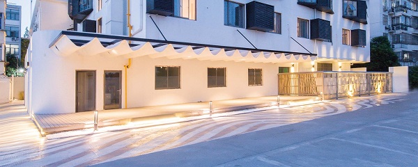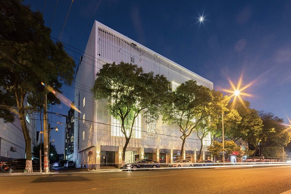 Riêng mặt sau tòa nhà lại gây ấn tượng với lối thiết kế hình hộp vuông vắn trong tông màu trắng lấp lánh.