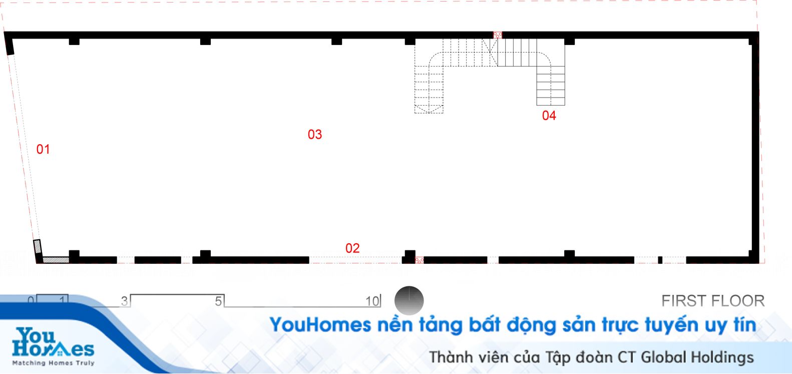 Tầng 1 để kinh doanh gạo, tầng 2 là để ở. Tất cả không gian của tầng 1 bố trí phía trước tiếp cận trực tiếp hướng mặt đường, phát huy tối đa khả năng kinh doanh theo kiểu quan niệm cũ của người Việt là kinh doanh luôn chọn mặt tiền.