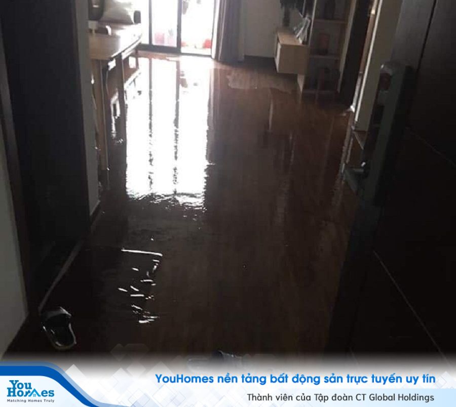 Sự cố bục ống cứu hoả đã khiến nhiều hộ dân tầng 21, toà nhà A4, chung cư An Bình City ngập trong biển nước.