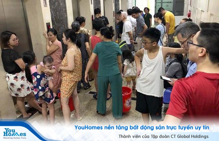 Hy hữu dân chung cư cao cấp phải mang xô, chậu xếp hàng chờ mua nước