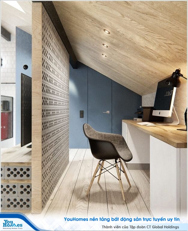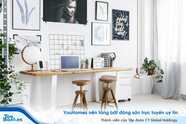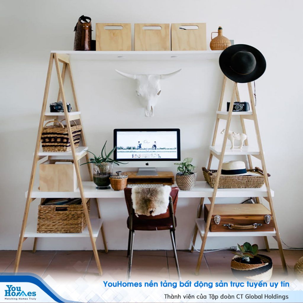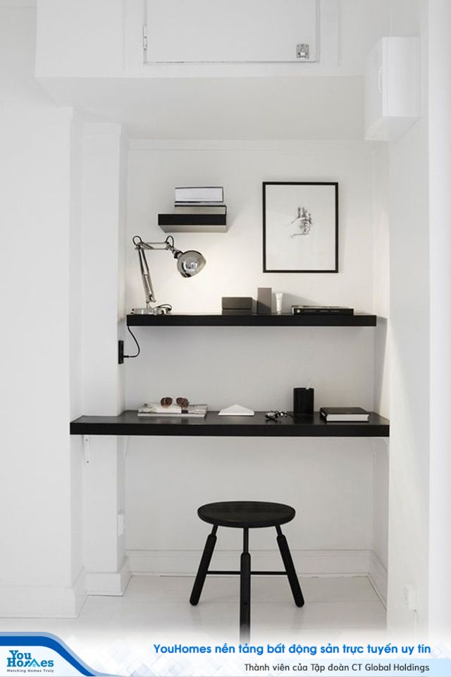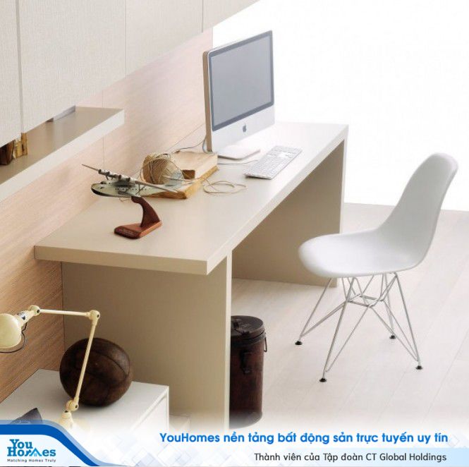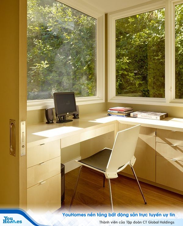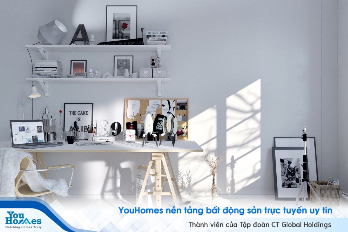 Tận dụng không gian trống: Với xu hướng kiến trúc hiện đại, ranh giới giữa các không gian gần như bị xóa bỏ, thay vào đó thiết kế mở được ưa chuộng. Gia chủ sẽ thấy thú vị hơn khi từ góc làm việc có thể quan sát nhiều không gian khác trong nhà. Vì vậy, nếu không thể bố trí một phòng làm việc riêng, bạn có thể tận dụng không gian trống ở phòng khách, phòng ngủ, tầng áp mái thậm chí là ban công.