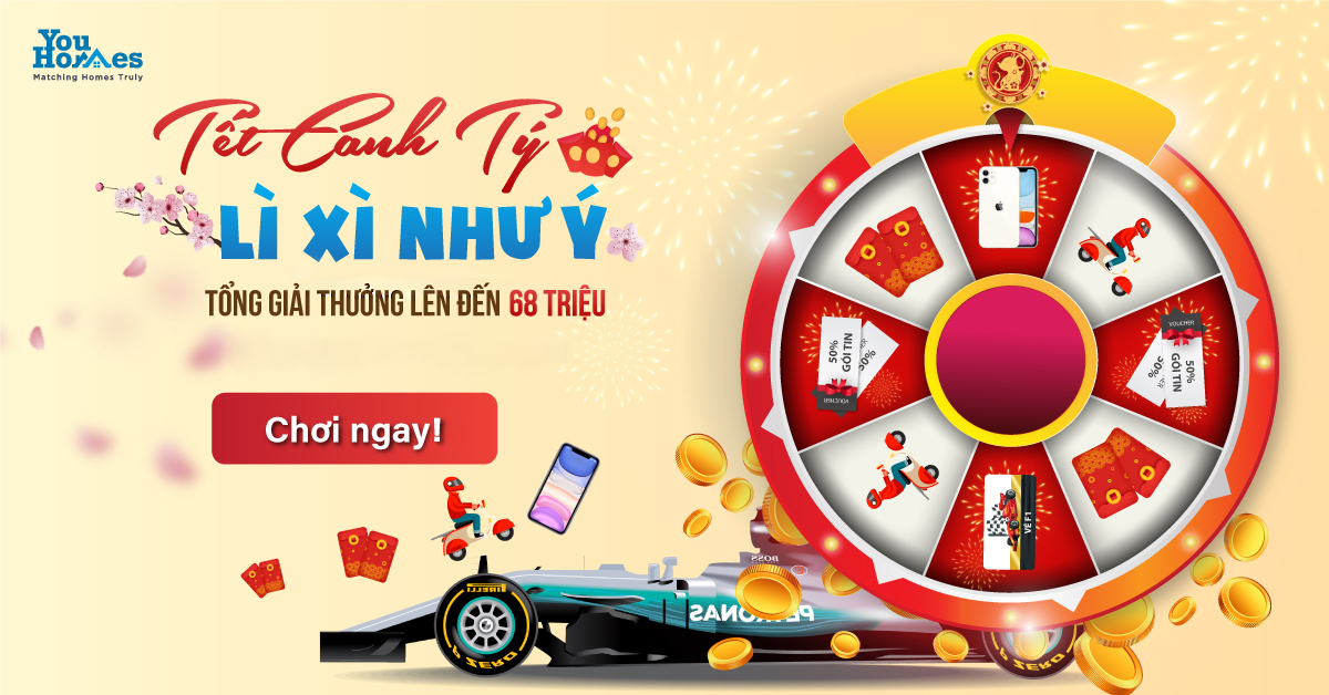 Chào mừng Tết Canh Tý 2020, YouHomes xin gửi đến Quý khách hàng chương trình "Tết Canh Tý - Lì xì như ý" cùng hàng trăm giải thưởng với tổng giá trị lến đến 68 triệu đồng.