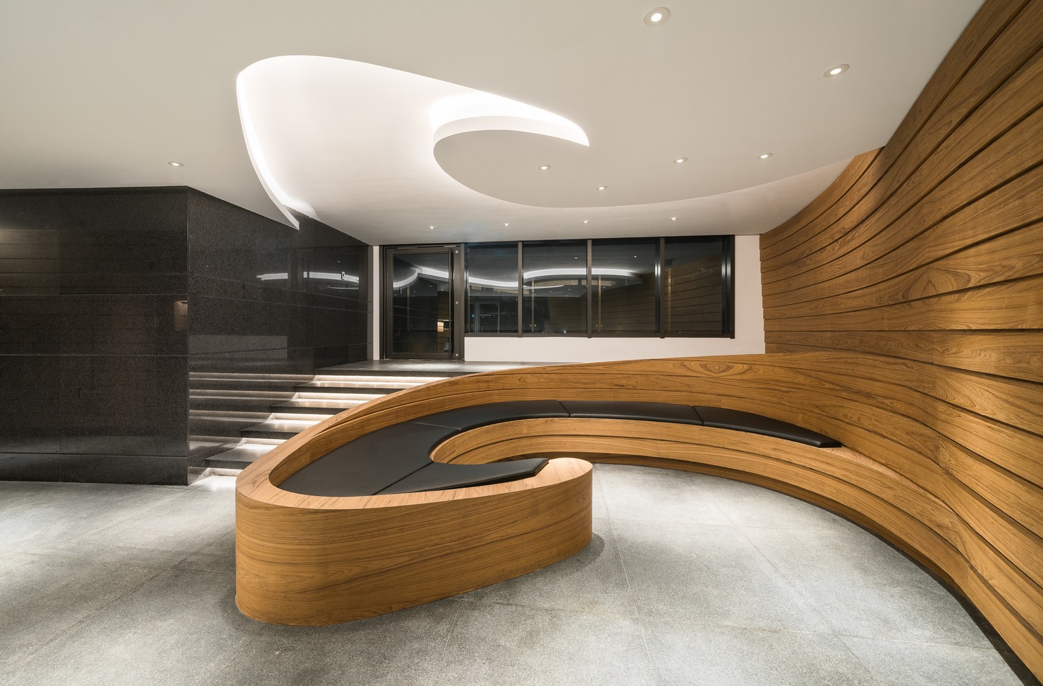 Mặt tiền xoắn ốc xếp tầng đóng vai trò chủ đạo, gây nổi bật cho toàn bộ không gian chung.