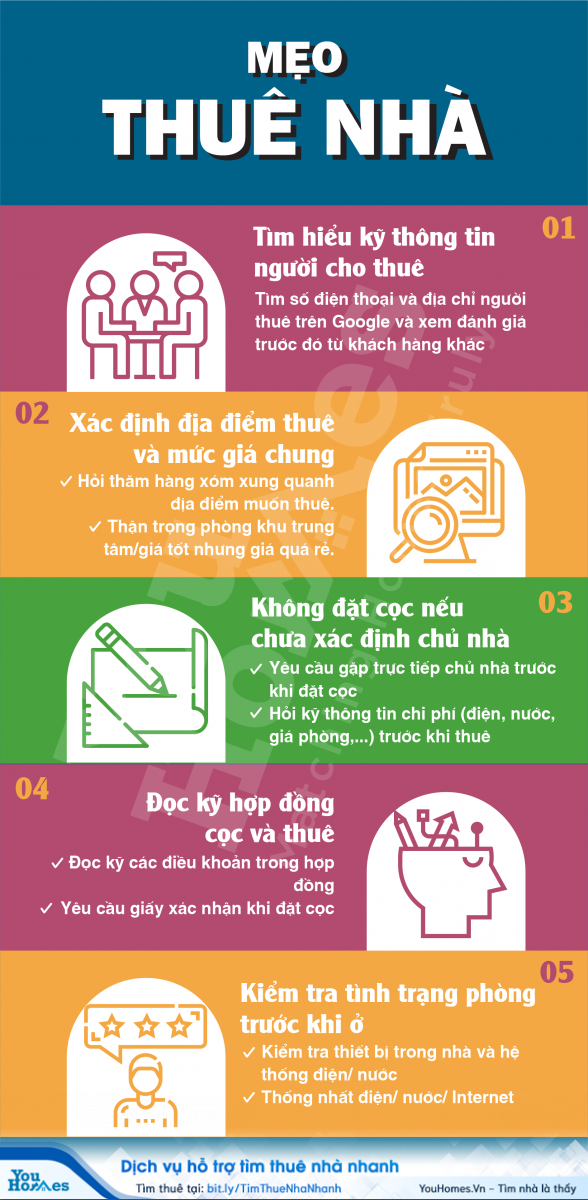 Trước khi quyết định thuê nhà dù là gắn bó với bạn thời gian ngắn hay dài, thì bạn đều cần có những sự cân nhắc kỹ lưỡng về nhiều yếu tố để tìm ra được căn hộ hợp lý nhất với nhu cầu và khả năng của mình. YouHomes khuyên bạn đừng bao giờ nên vội vàng đưa ra quyết định khi chưa tìm hiểu kỹ về căn nhà. Infographic sau đây là 5 yếu tố bạn cần luôn lưu ý trước khi quyết định thuê nhà.