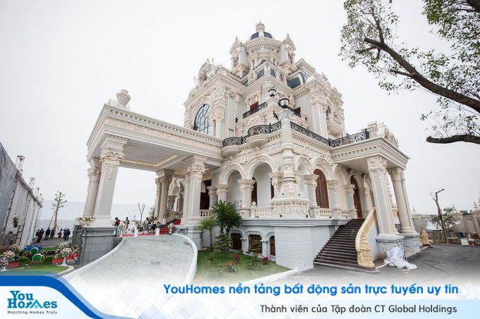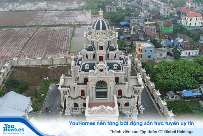 Ngôi nhà hoành tráng này nằm ở làng tỷ phú Phú An, huyện Trực Ninh, Nam Định có tổng diện tích 3 hécta. Diện tích nhà ở là khoảng 700 m2, với 7 tầng, 8 phòng, có cả phòng spa và hầm rượu. Chủ nhà là ông Trần Văn Dĩnh, một doanh nhân nổi tiếng trong lĩnh vực đóng tàu biển.