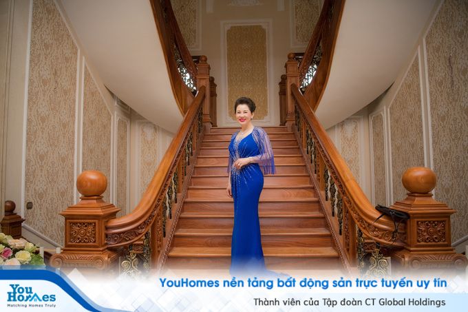 Những chiếc cầu thang gỗ, phù hợp với tổng thể nội thất chung của cả ngôi nhà. Đây là điểm chụp hình ưa thích của bà chủ Kim Dung và các khách khứa tới chơi.