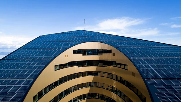 Với mục đích khai thác các công nghệ thu thập năng lượng mới nhất, tòa nhà này bao gồm các mái che đa giác khổng lồ, tích đặt các tấm pin mặt trời.