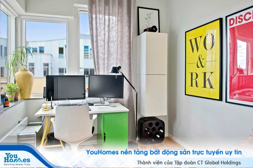Góc làm việc được bố trí sát cửa sổ để tận dụng được nguồn ánh sáng tự nhiên.