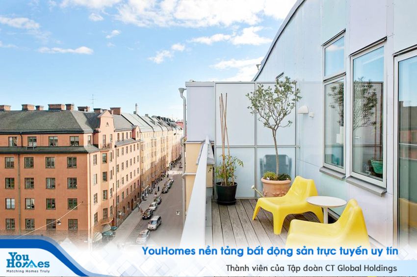 Góc ban công nhỏ xinh với khung cảnh lãng mạn có thể ngắm nhìn thành phố mộng mơ quanh nhà. Đây cũng có thể trở thành một góc "sống ảo" tuyệt đẹp trong căn hộ của bạn.
