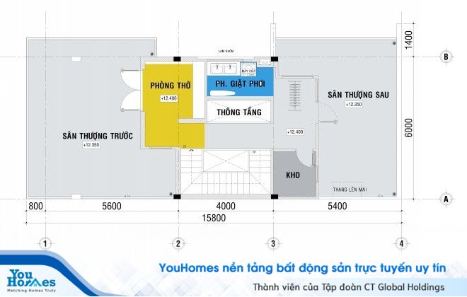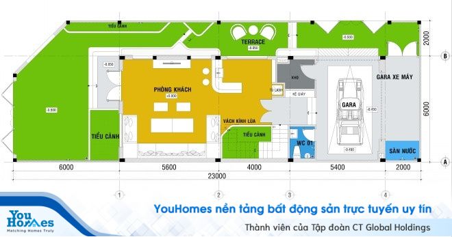 Thiết kế mặt bằng tổng thể của ngôi nhà phố: