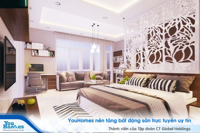 Mỗi không gian phòng ngủ của ngôi nhà phố lại sở hữu một phong cách khác nhau, tùy vào nhu cầu sử dụng và độ tuổi mà được bố trí rất hợp lý. Tất cả các phòng đều được bố trí đầy đủ tiện nghi giải trí, học tập cực kỳ tiện dụng. Những phần vách ngăn cách điệu được ứng dụng khá nhiều giúp không gian phòng trở nên mềm mại và ấn tượng hơn.