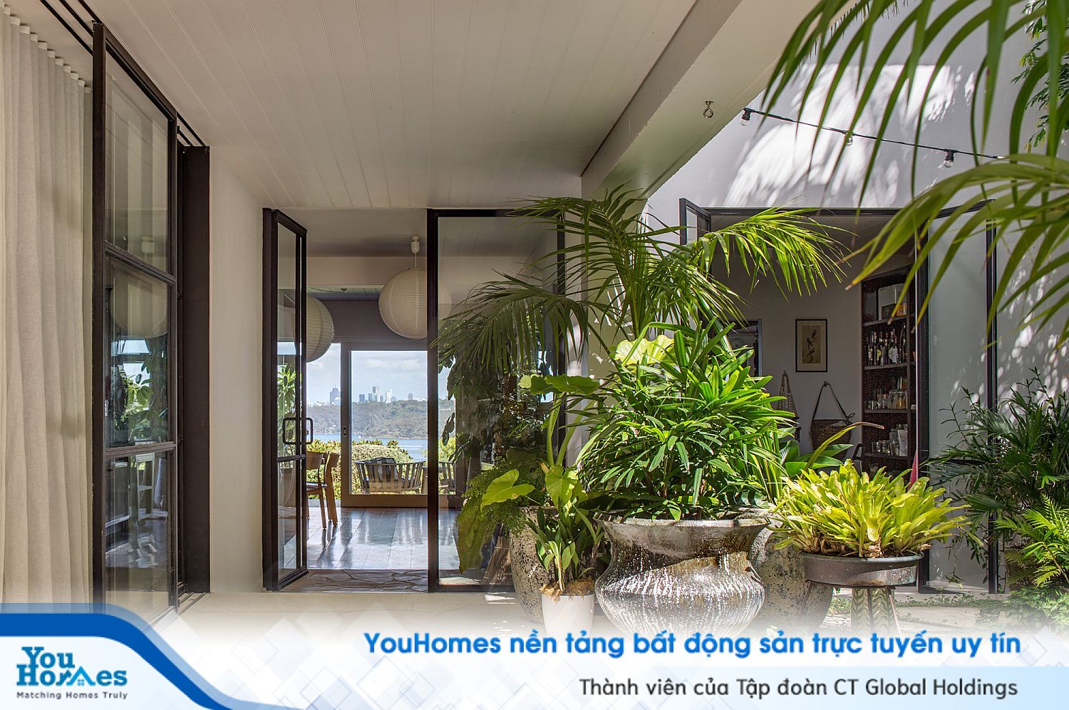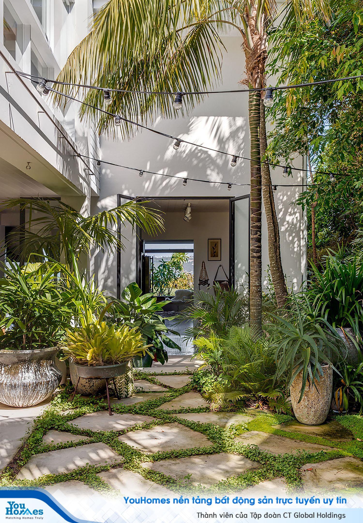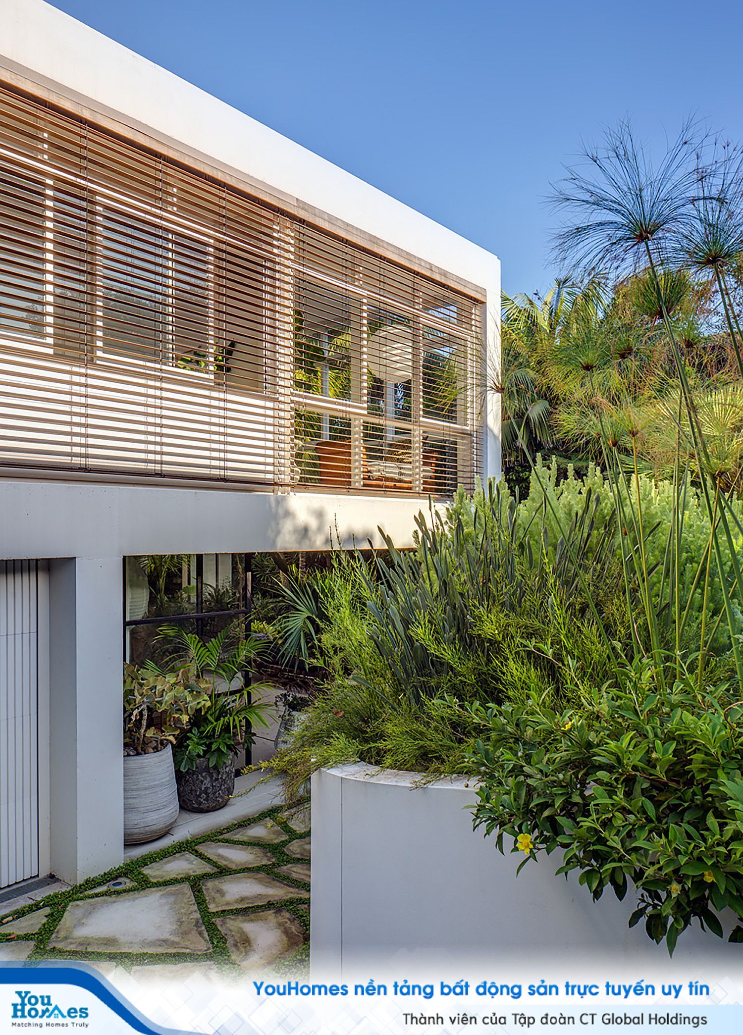 Cảnh quan xung quanh ngôi nhà thúc đẩy cuộc sống ngoài trời. Ngôi nhà được đầu tư chú trọng đặc biệt tới không gian xanh.